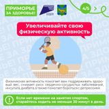 3. Правильное питание - сбалансированный рацион с достаточным количеством овощей, фруктов, белка и полезных жиров. Объём выпитой жидкости, воды не менее 2,5 литров в сутки поможет поддерживать нормальный вес и предотвратить развитие многих заболеваний.